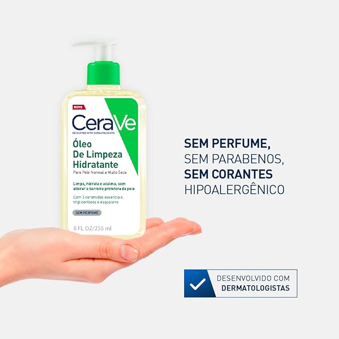 - Textura em óleo creme de pH neutro, sem fragrância, sabão ou parabenos